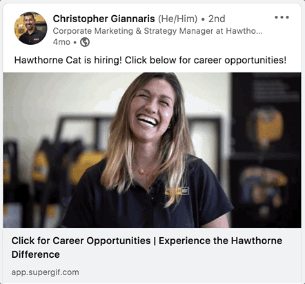 Showcase culture, diversity, and community engagement with GIFs that link directly to job openings.